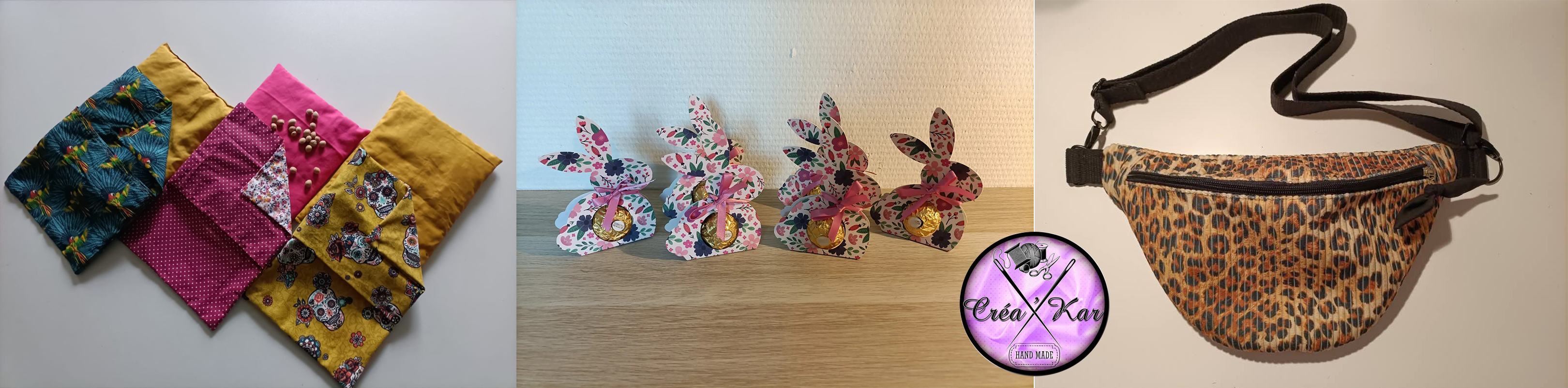 Dans une démarche "zéro déchet" Karine assemble, crée à partir de chutes de tissus. D'ailleurs, elle récupère volontiers les rouleaux de tissus ou autres éléments de mercerie pour son atelier. En parallèle, elle se fournit en tissus régulièrement afin de proposer des nouveautés.