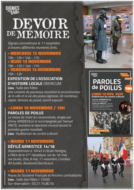 Oignies commémore le 11 novembre, l'Armistice, à travers différents moments forts.