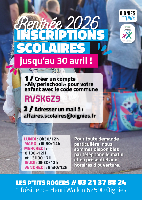 Pour finaliser l’inscription : Contacter le service enfance 03.21.37.88.24 ou par mail à affaires [point] scolaires