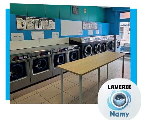 Aurelie D. et son conjoint, en reprenant la laverie, changent le nom en «Laverie NAMY». « ll s'agit simplement des initiales des prénoms de la famille » sourit Aurélie.