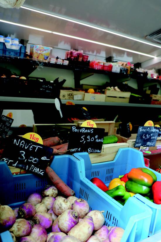 « Tout est de saison ! Je donne la priorité aux produits du coin en travaillant avec un groupement de producteurs locaux. Vous pouvez également trouver une partie épicerie avec des conserves, des jus de fruits, du miel, du café, des oeufs…»