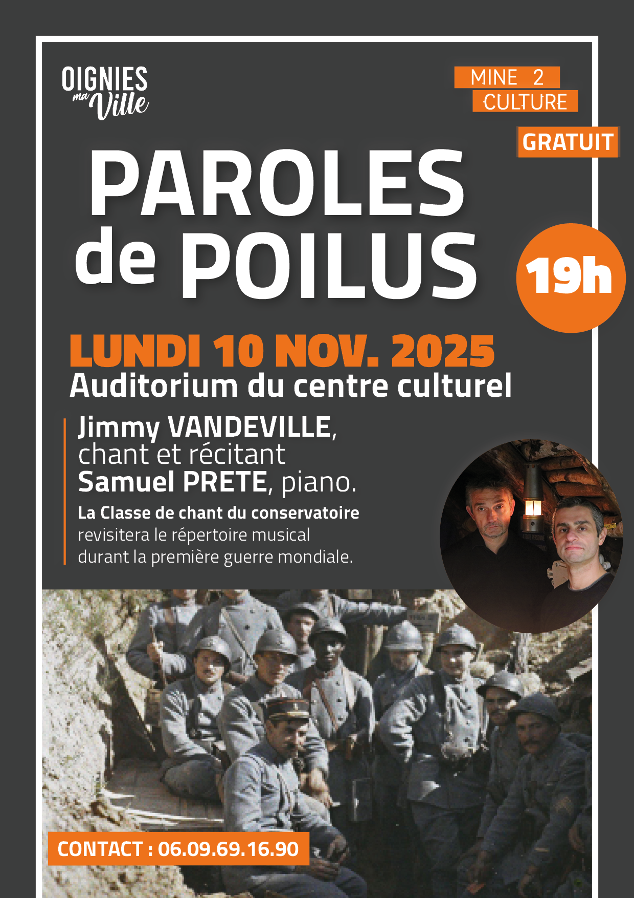 La classe de chant du conservatoire, dirigée par Jimmy VANDEVILLE et accompagnée par Samuel PRETE, revisitera le répertoire musical durant la première guerre mondiale.