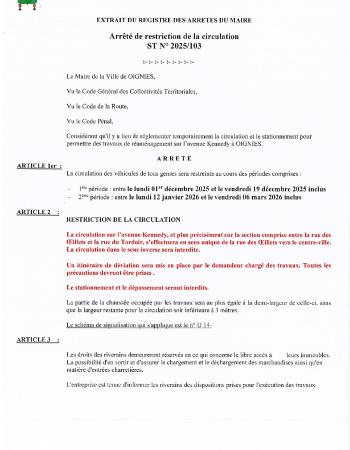 Une déviation sera mise en place, la rue Kennedy sera en sens unique en direction du centre-ville. Pour la bonne tenue des travaux et la sécurité de tous, merci de sortir vos véhicules avant 7h le matin.